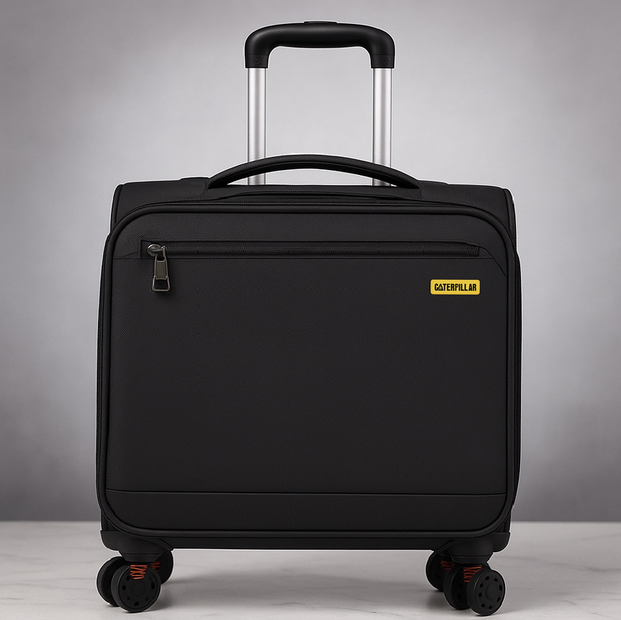 چمدان سافت کیس خلبانی برند caterpillar از بهترین متریالها تولید شده و بسیار آپشنال است. این چمدان از برزنت دانه درشت ۱۰ لایه تولید شده و بسیار مقاوم است. چهار چرخ آن سایلنت ران با توپی فلزی هستند و در تمام چهار چرخ فنر تعبیه شده که علاوه بر حس بهتر حمل آن، در هنگام پرت شدن یا تنش وارده میتواند به بهترین نحو از چرخ ها مراقبت کند.