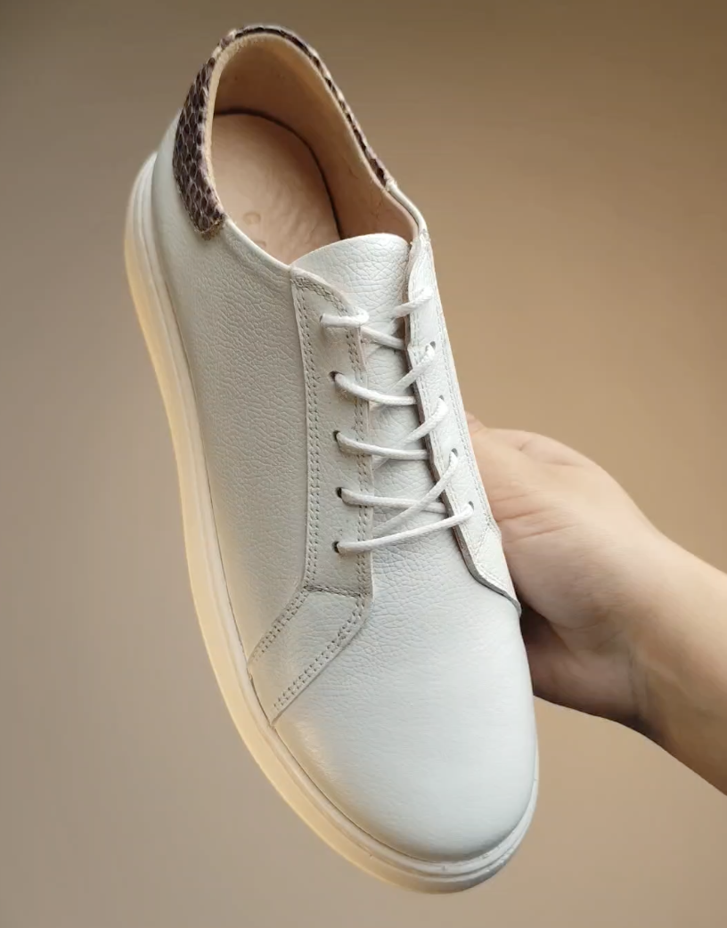 هیچ چیز به اندازه یک کتونی چرم دخترانه سفید جذاب، نمیتواند احساس سرزندگی و شادابی را در یک خانم زنده کند. این مروارید سفید حس جوانی و نشاط را به انسان القا میکند و همیشه محبوب قلبهاست. کفش اسپرت زنانه چرم سفید مدل ۱۰۲۳ چرم کاکتوس، از چرم گاوی اصل ساخته شده است و آستر به کار رفته در آن نیز از چرم گوسفندیست. جنس زیره این کفش پلی اورتان است. در برابر لغزش و رطوبت مقاوم است و احتمال شکستن آن بسیار پایین است. کفی داخلی این کفش اسپرت چرم نیز طبی است و میتوانید با آن قدم بزنید به دیدار دوستانتان بروید یا ورزش کنید. برای زیباتر شدن این محصول، یک نوار پوست ماری نیز در پشت کفش قرار داده شده است. این مدل دارای رنگ مشکی نیز هست و اگر تمایل به استفاده از رنگ سفید ندارید، میتوانید آن را انتخاب نمایید. در پایان لازم است به این نکته اشاره کرد که با خرید کفش چرم اسپرت زنانه، این امکان را خواهید داشت تا از سلامت پاها به ویژه مچ و کف پا اطمینان حاصل کنید؛ زیرا این کفش پشتیبانی خوبی از آن نواحی به عمل میآورد.