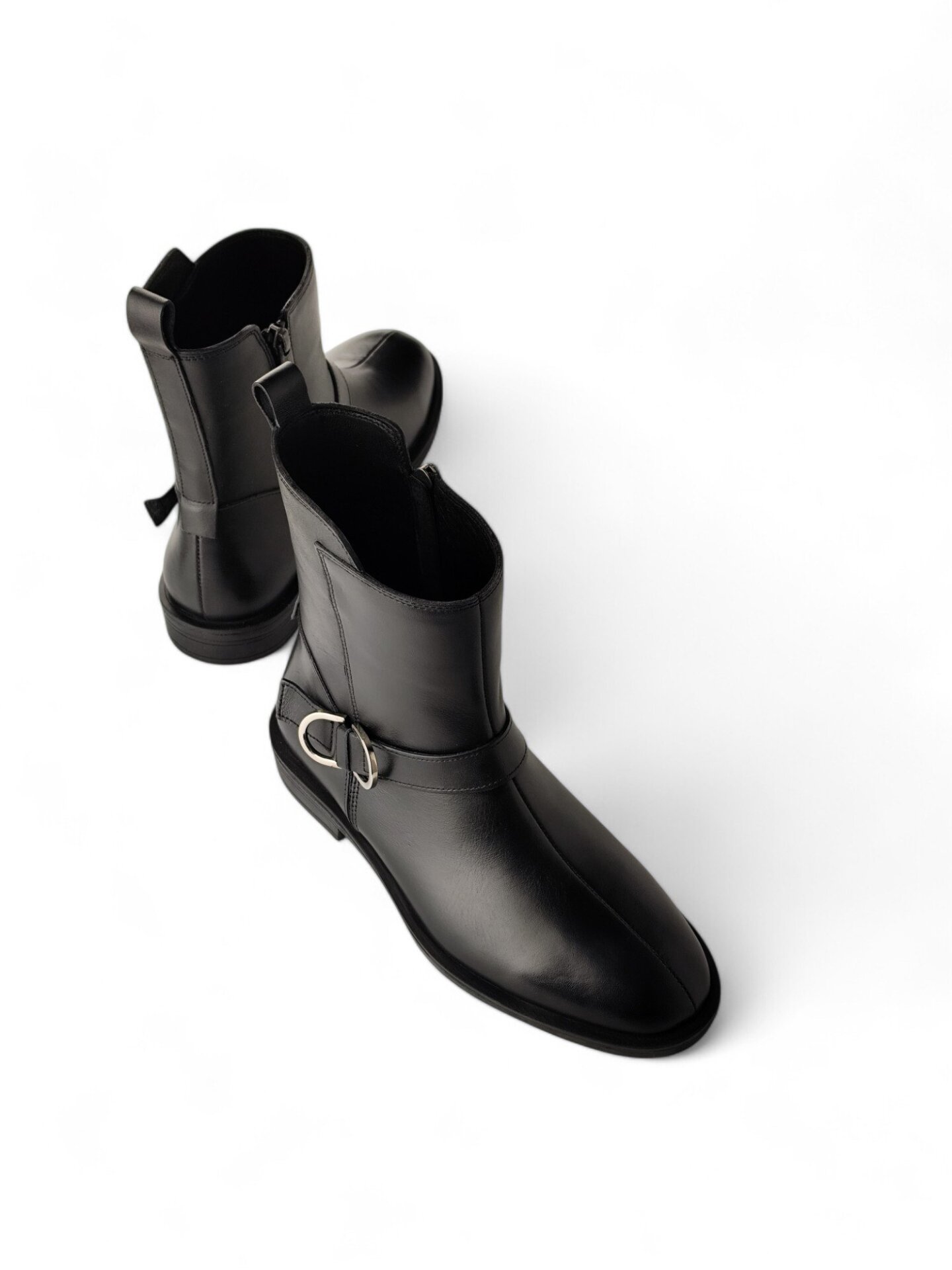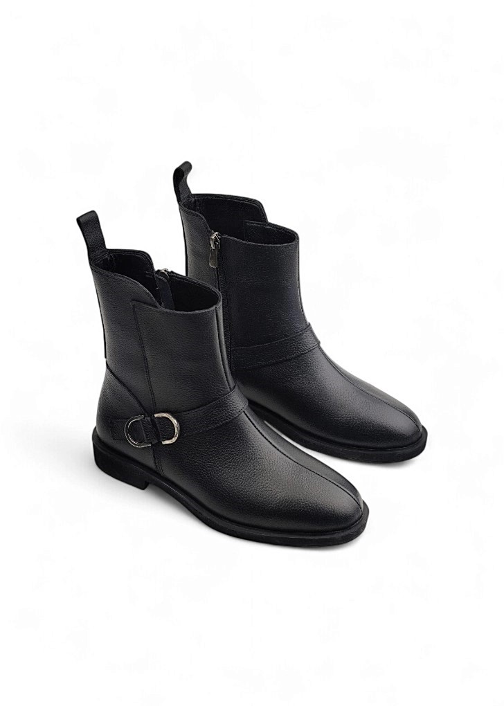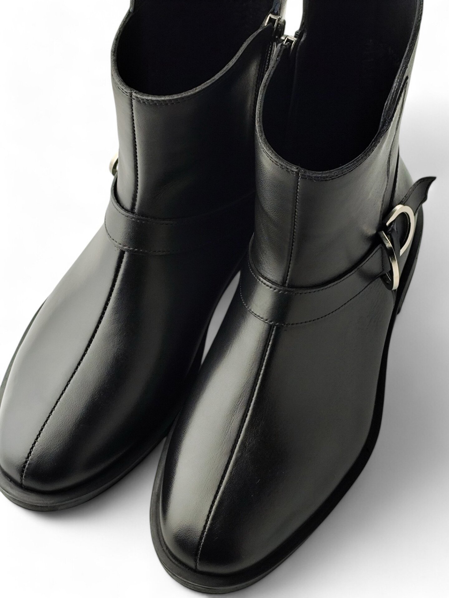 بوت زنانه مشکی چرم طبیعی سگک دار؛ ترکیبی از زیبایی و راحتی