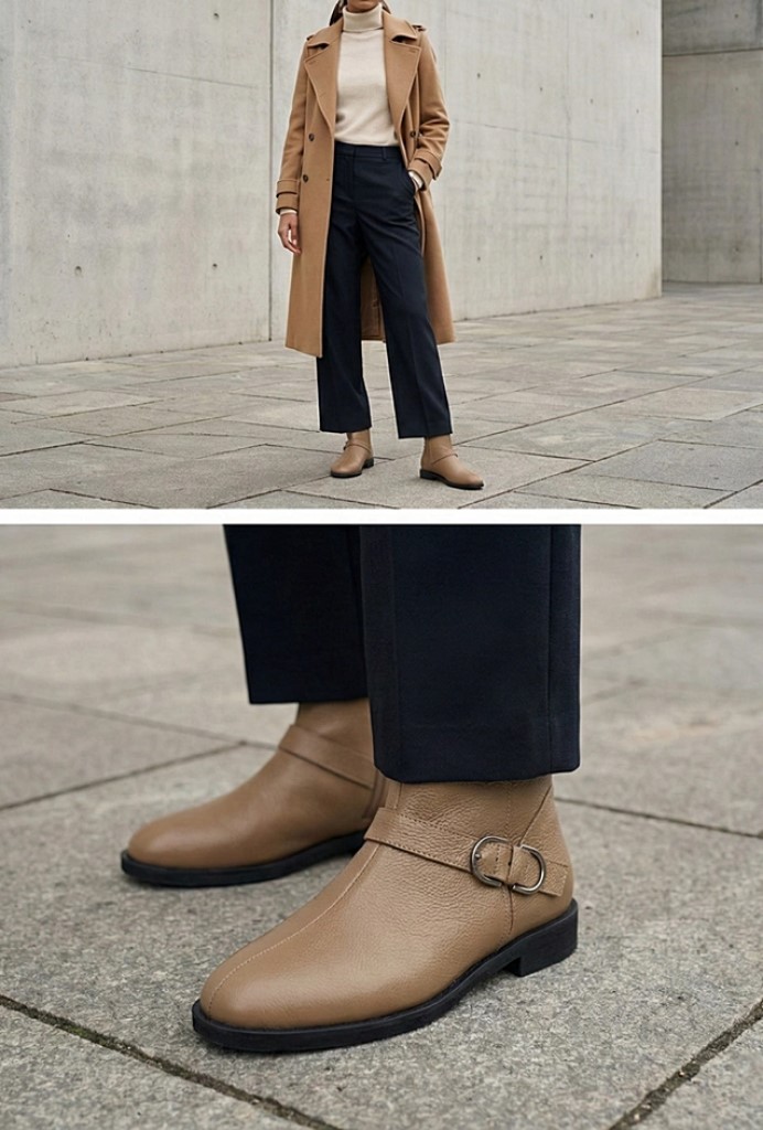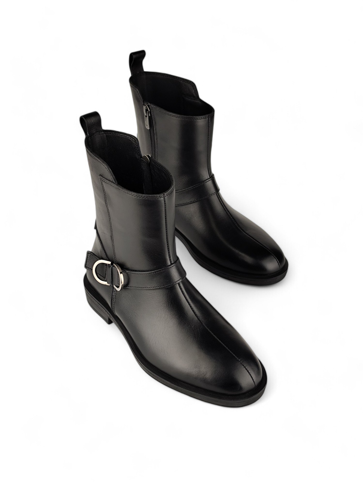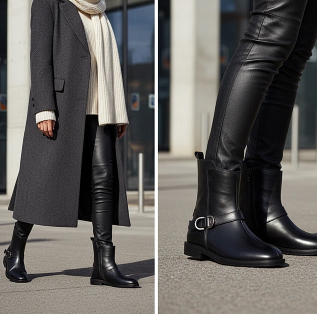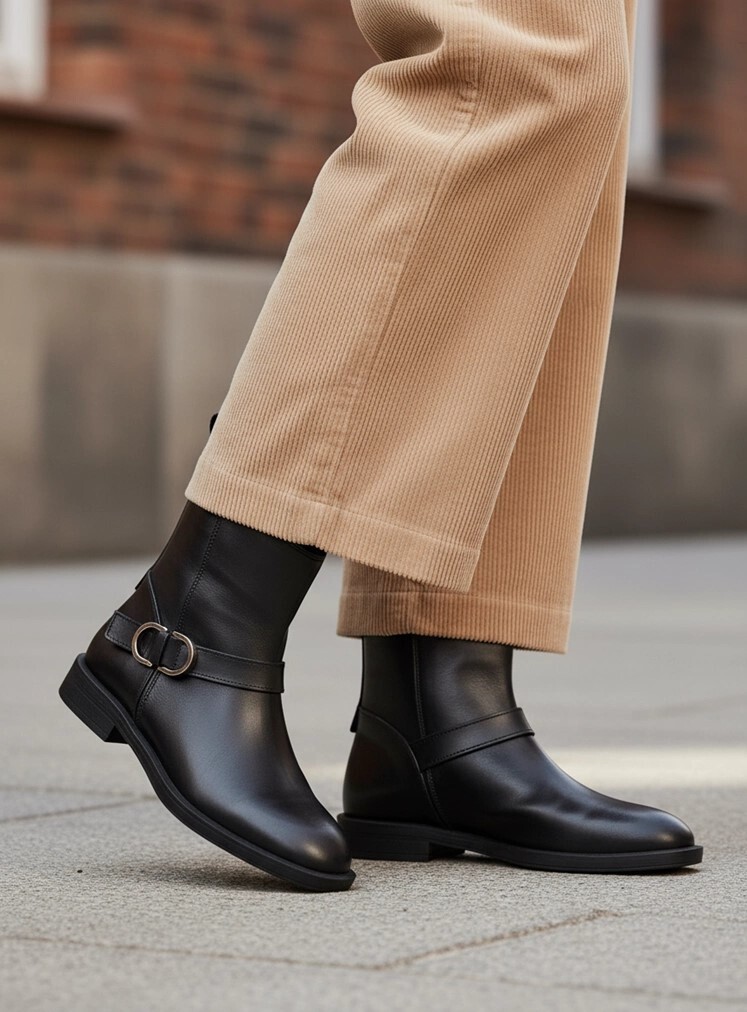 بوت زنانه مشکی چرم طبیعی سگک دار؛ ترکیبی از زیبایی و راحتی