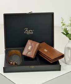 ست سه تکه کمربند و کیف پول چرم